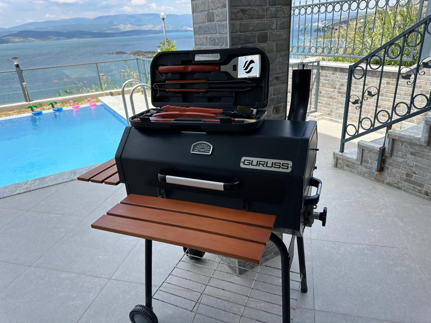 Deluxe Villa. This villas standout features are the pool with a view and sauna. Boasting a private entrance, this air-conditioned villa features 2 living rooms, 7 separate bedrooms and 4 bathrooms with a bath and a shower. Guests will find a stovetop, a refrigerator, a dishwasher and kitchenware in the fully equipped kitchen. The villa also comes with a barbecue. The spacious villa features a flat-screen TV with cable channels, a washing machine, a tea and coffee maker, a seating area as well as sea views. The unit has 11 beds.